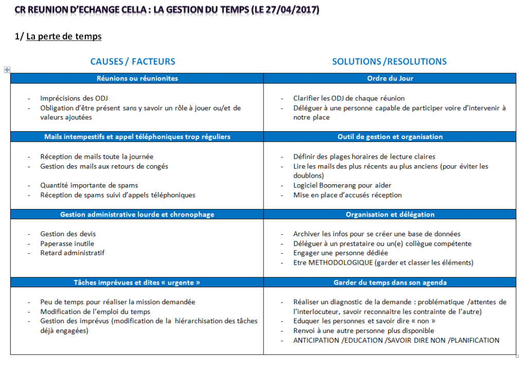 CR Réunion d’échange CELLA : LA GESTION DU TEMPS (le 27/04/2017)