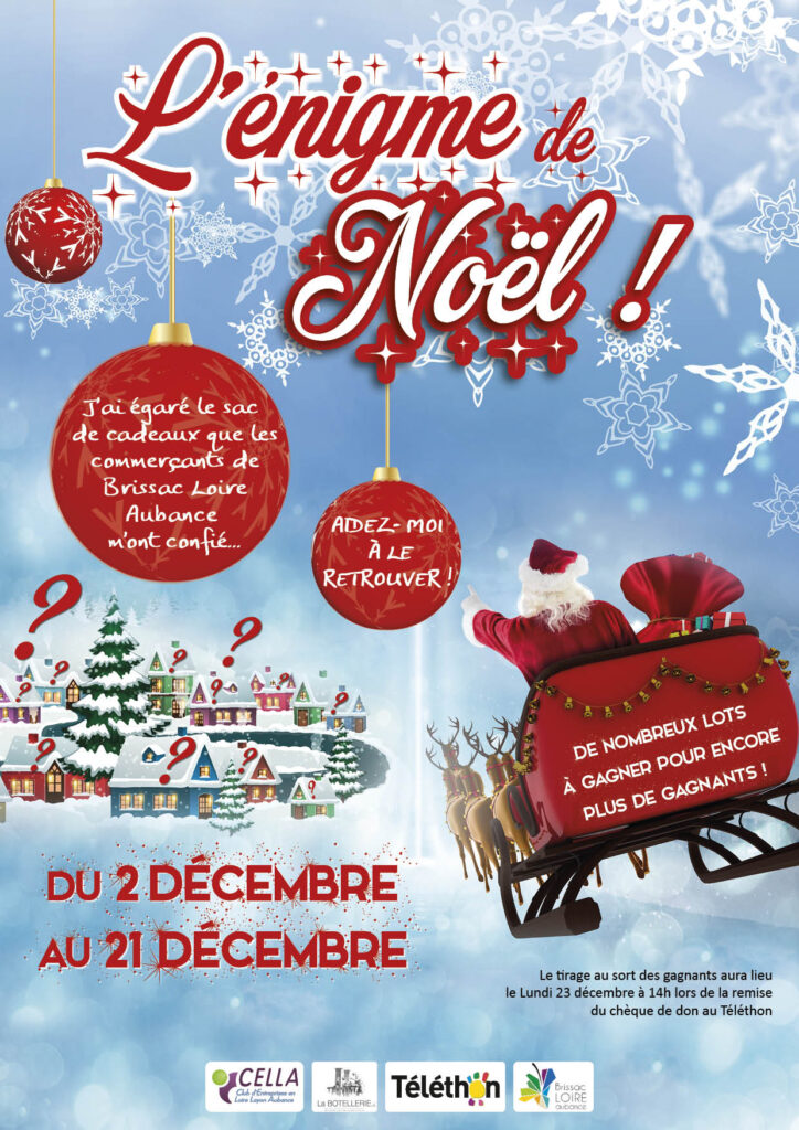 Principe du jeu : Le père Noel a égaré le sac de cadeaux que les commerçants de Brissac Loire Aubance lui avaient confié… aidez-le à le retrouver en retrouvant le mot mystère caché dans une grille de mots fléchés. Ce mot mystère est le lieu où se cache le sac de cadeaux du Père Noël. Chaque commerçant participant vous transmettra une grille de mots fléchés et vous donnera un indice pour la compléter. Une fois la grille finalisée, déposez là chez l’un des commerçants participant à l’opération (Ne seront comptabilisées que les grilles complétées à +50% minimum)